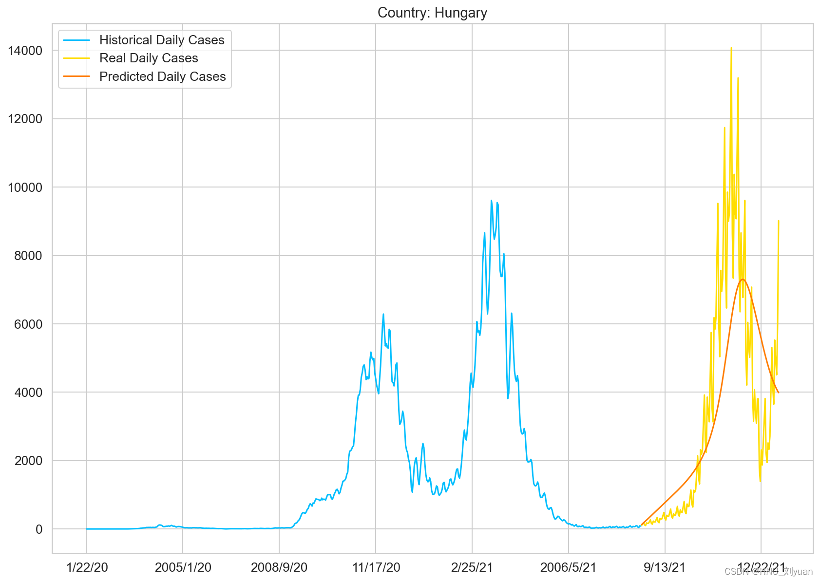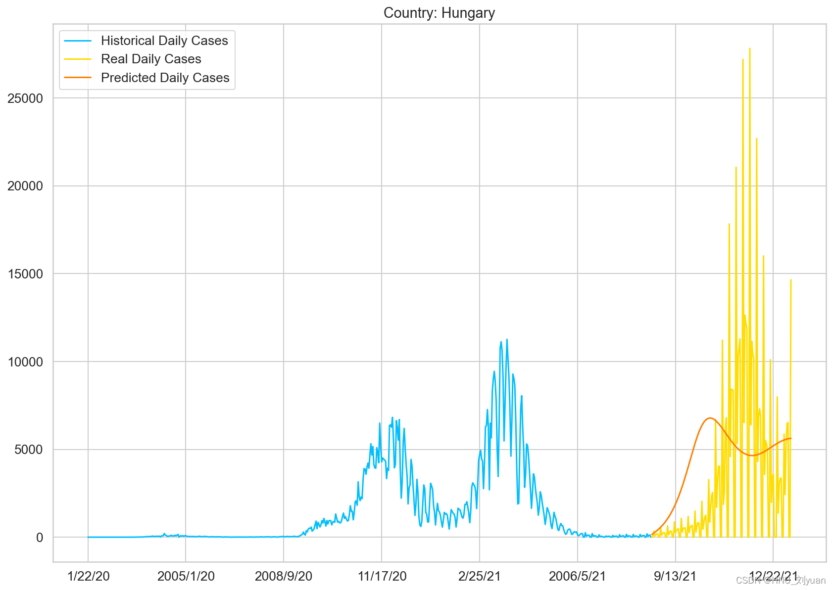每日新增病例属于时间序列数据,每日新增病例数不仅与病毒的感染能力有关,也和地区的人口、国家防疫措施 、疫苗接种情况、病毒种类等有关系。所以是个十分复杂的问题,在此为简单起见,仅将其看作时间序列数据,由于找不到感染不同种类新冠病毒的病例数据,故将其都看作同一种病毒对待,使用课上讲过的典型的RNN系列网络进行预测求解。