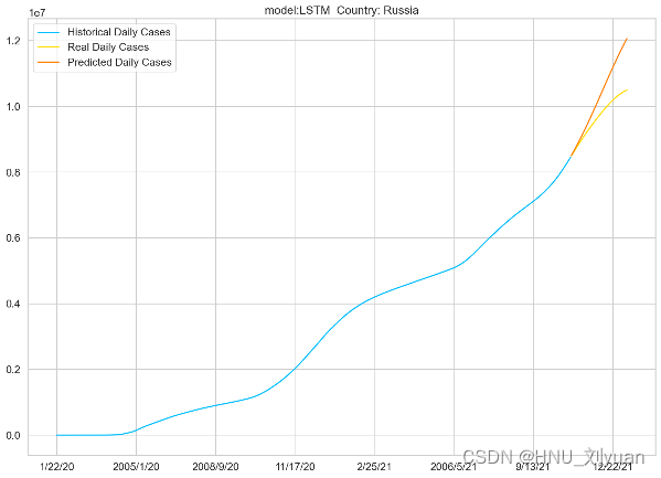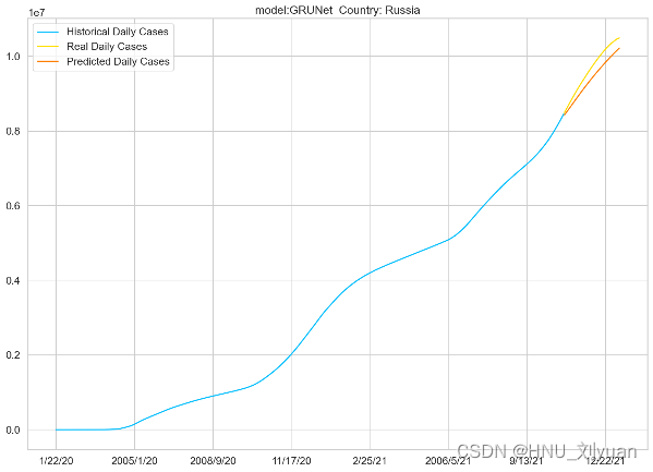 使用LSTM 、GRUNet对俄罗斯累计感染人数的预测