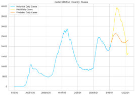 使用LSTM、GRUNet对俄罗斯每日新增感染人数的预测